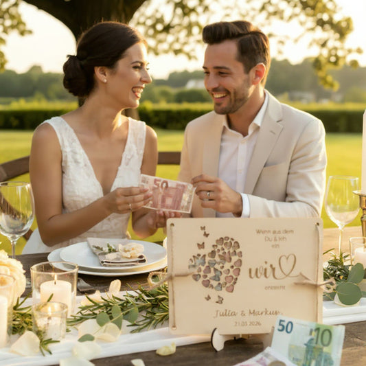 Mit unseren personalisierten Holz-Geldgeschenkkarten wird dein Geschenk zu etwas Besonderem – kreativ, persönlich und mit echter Überraschung beim Auspacken.