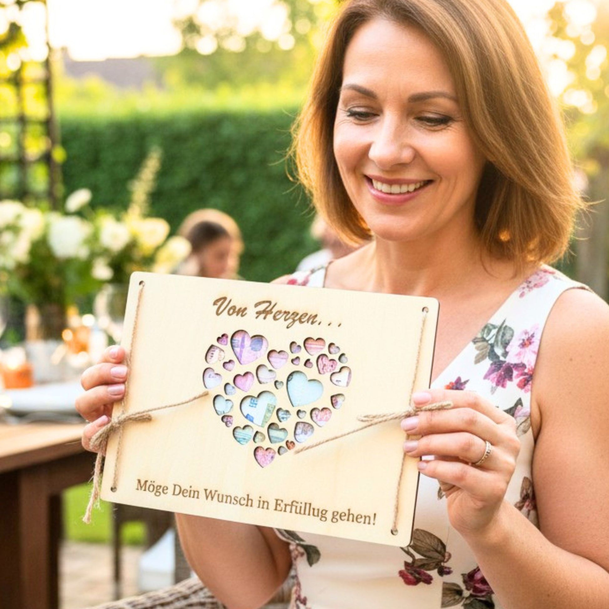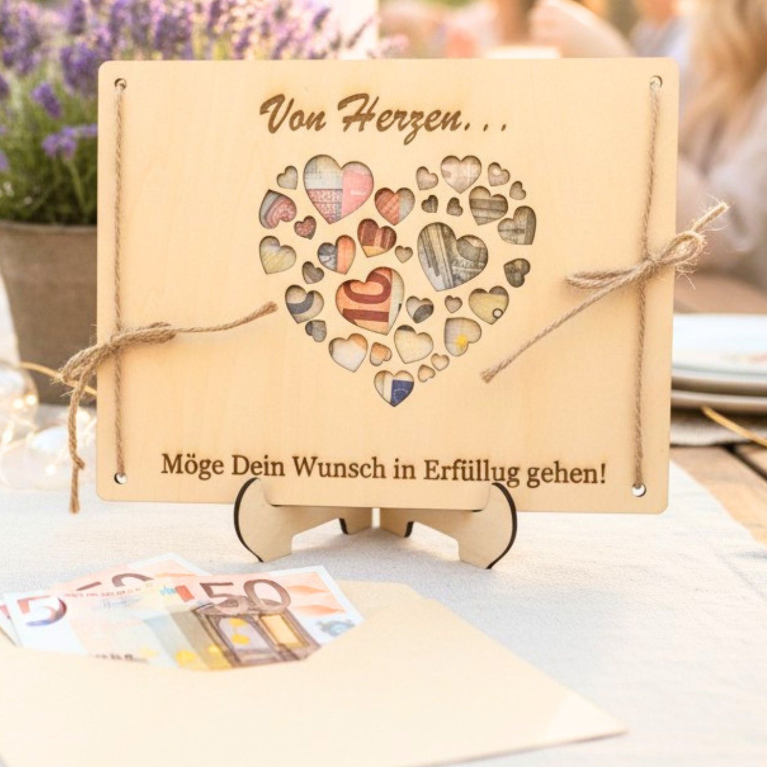 Geldgeschenk – Wunscherfüller „Von Herzen“ aus Holz